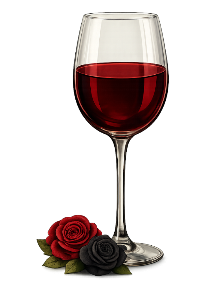 Red wine swirling, shadows near,